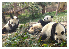 成都大熊猫繁育研究基地是为拯救濒危野生动物大熊猫而兴建的具有世界水平的大熊猫繁育科研机构。基地建成了科研大楼、开放研究实验室、兽医院、兽舍和熊猫活动场、天鹅湖、大熊猫博物馆、综合服务部等基础设施,形成竹木苍翠,鸟语花香,集自然山野风光和优美人工景观为一体,适宜大熊猫及多种珍稀野生动物生息繁衍的生态环境。至今基地共繁殖大熊猫32胎,产48仔,成活28仔;完成相关科研课题50多项,获奖30多项;先后荣获联合国环境规划署颁发的"全球500佳",以及"中华绿色科技金奖","全国环境综合治理优秀工程","四川省百佳绿化先进单位","四川省科普教育示范基地"等殊荣。成都大熊猫繁育研究基地仿野生环境。